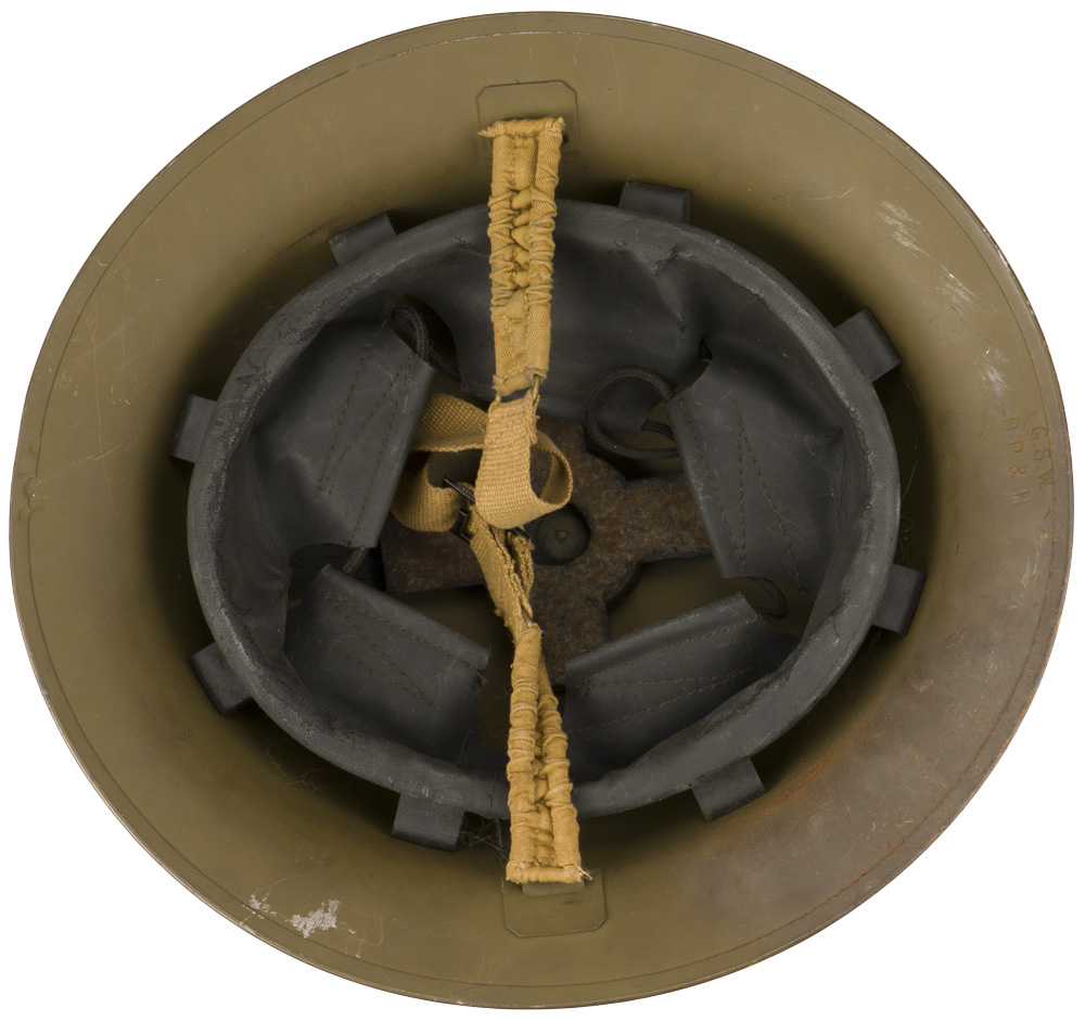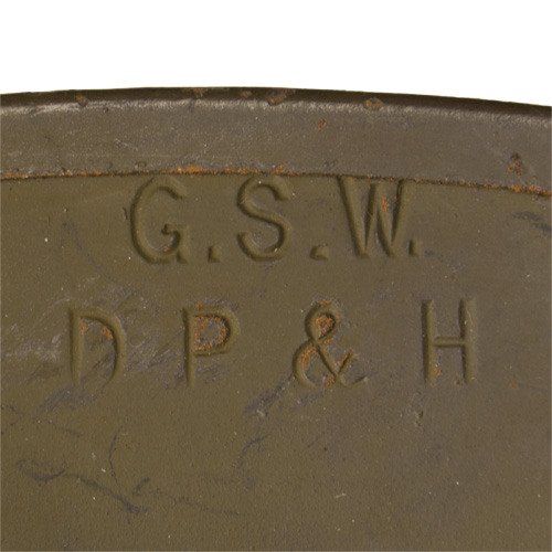 The A.R.P. (Air Raid Precautions) organization was responsible for procuring and issuing of Civil Defense helmets in the UK during WW2. Helmets where issued to workers in areas and factories that where likely to be bombed by the Luftwaffe.PHYSICAL DESCRIPTION: Standard MKII military production example. Retains most of its original paint. Shell is marked "G.S.W" and "DP & H". Canadian made helmet, note the General Steel Wares mm, and the D.P. & H. is for Dept of Pensions and Health. Complete original MKII pattern liner, sized and dated for 1942. Complete original MKII chinstrap. Decent example of an A.R.P. helmet.
