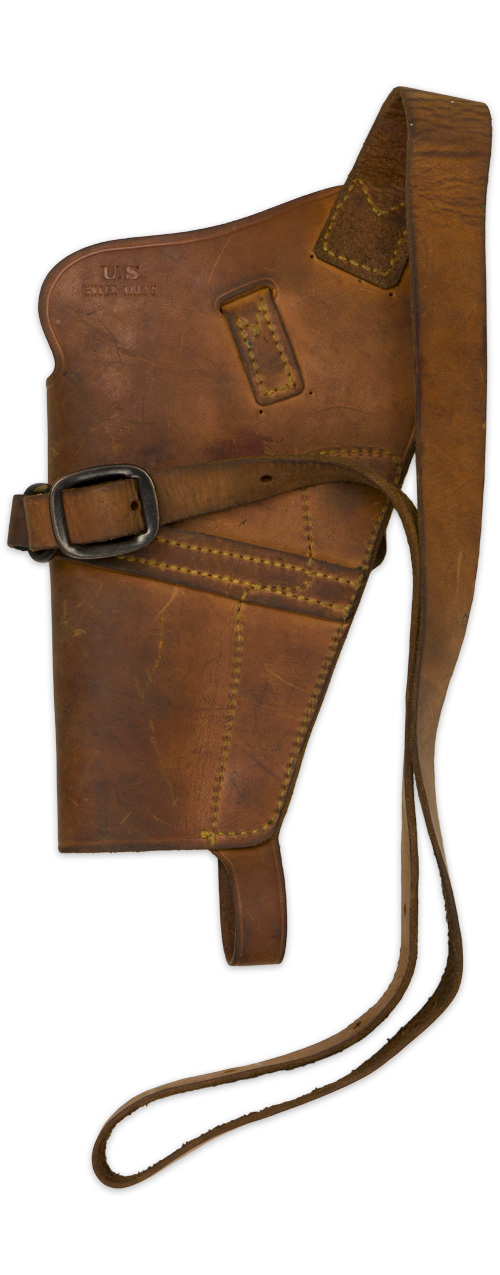 BACKGROUND: This holster became standardized in 1942 for pilots and tank crews. The M7 was issued late war to replace the M3. The M7 could be worn in various positions other than over the shoulder to hang between the arm pit and waist along the rib cage.