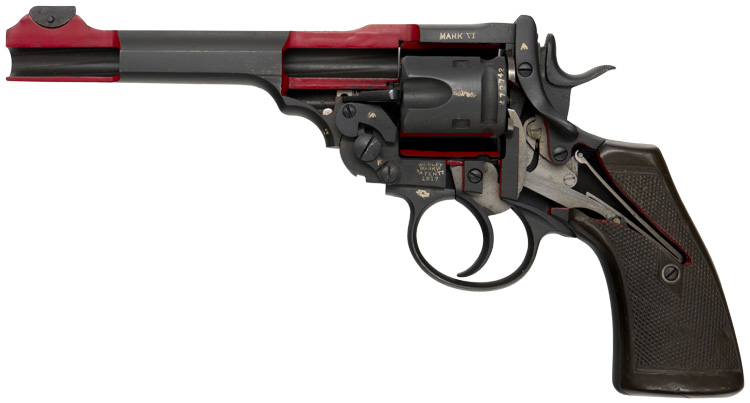 BACKGROUND: The Webley MKIV .455 revolver was known as the "Boer War" Model due to the large quantities of officers who purchased them on the way to partake in the conflict. During WWI the MkVI became the standard sidearm for British and Commonwealth troops as was distributed to all arms of the military.