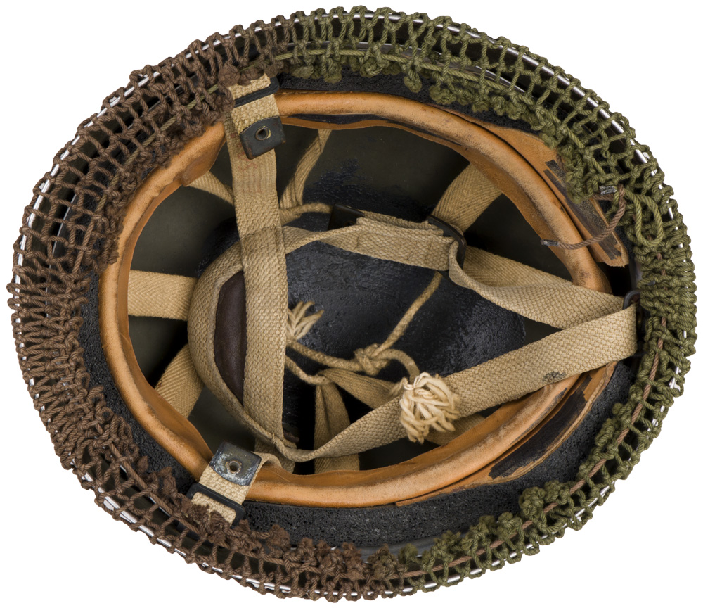 Similar in style to the German paratroopers’ helmet, the British Mk. II Paratroopers Helmet was originally introduced towards the end of 1943. Nice paint, good liner and chinstrap system. Interior top pad is missing. Maker marked to BMB and size 71/2. Complete with original WW2 net. Perfect for living history re enactment, film industry or to fill a hole in a collection until you can obtain and original. Would work well for a WW2 impression.