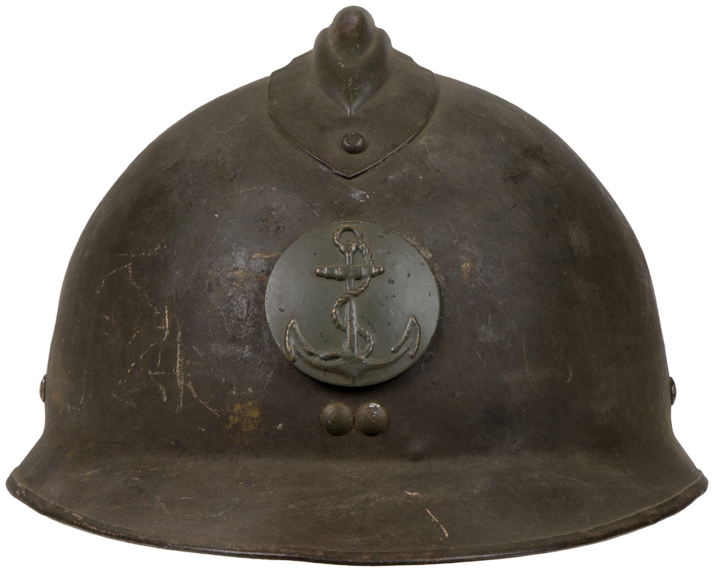 BACKGROUND: The French were the first to have a general issue, "modern ", steel helmet in WWI and developed the classic "Adrian" style helmet in early 1915 followed by the British army later that year and by the German’s in 1916. By September of 1915 most French front line personnel had received the helmet and by the end of the year over three million had been manufactured and distributed. The next helmet produced by the French was the M26. It differed from the M16 by being pressed out of a single piece of manganese steel and had a different liner making it easier to manufacture.