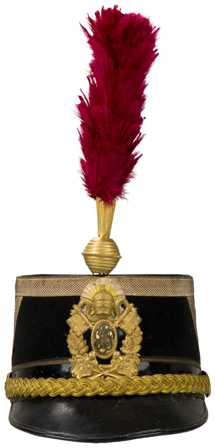 GPP over the crossed keys and papal tiara. The kepi has its metal pompom and red