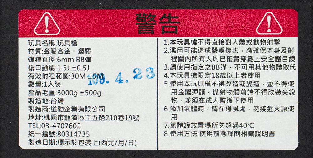 Muzzle Speed:110m/s