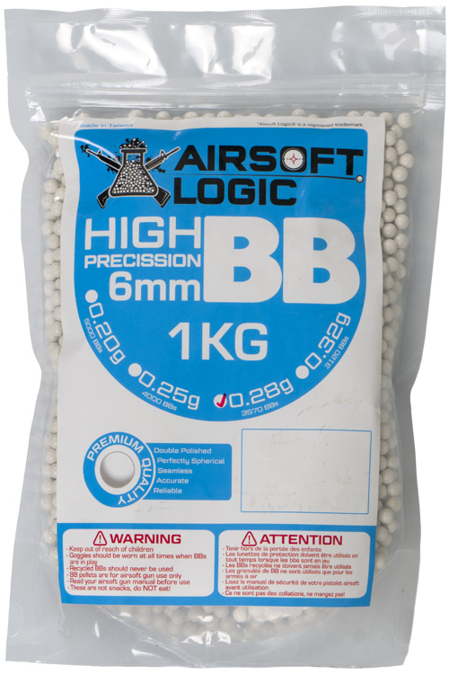 New, unopened 1kg bag of 0.28g BBs. 3570 count. Airsoft Logic brand. Manufactured in Taiwan.