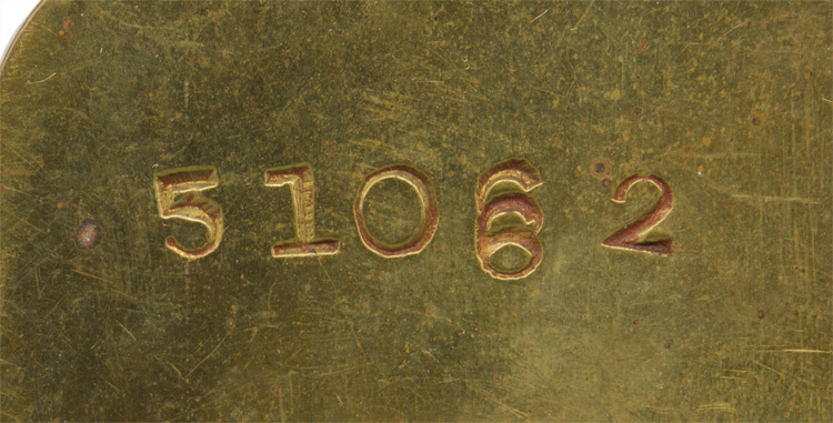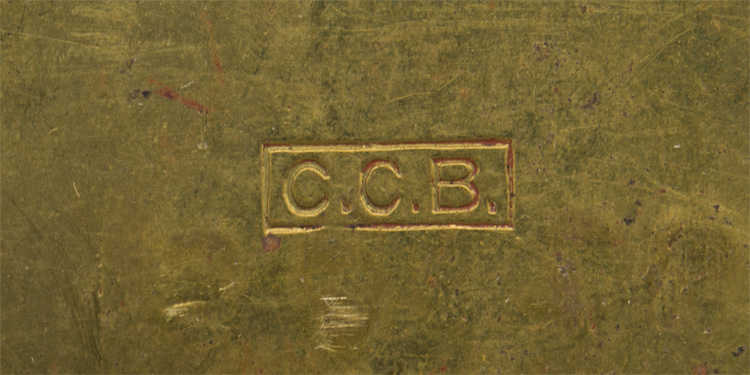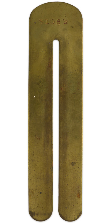 A brass construction polisher that measures approximately 17cm x 4cm that is numbered to each side, as well as marked "C.C.B."