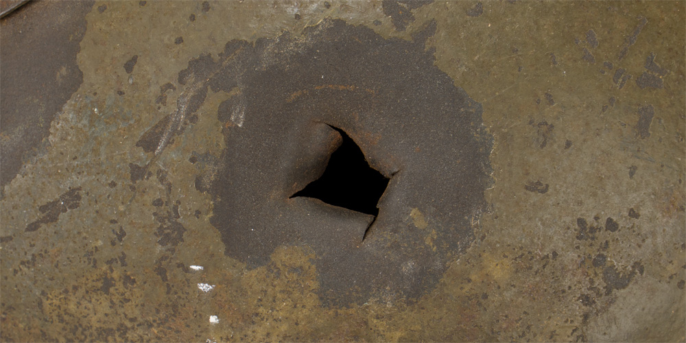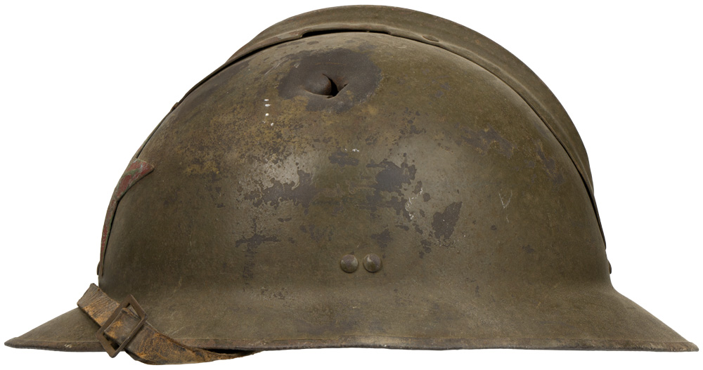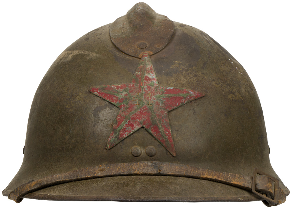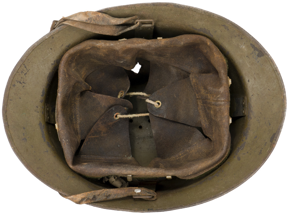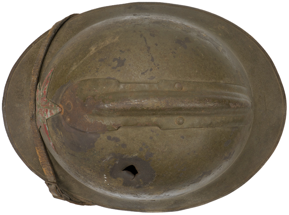 Looks to be an M26 pattern, with metal Soviet Star affixed to the front. The numbers “44” are stamped to the front of the shell. Complete liner and chinstrap as photographed. Battle damage with bullet hole to the top of the helmet. I think scarce, first time I have had one like it.