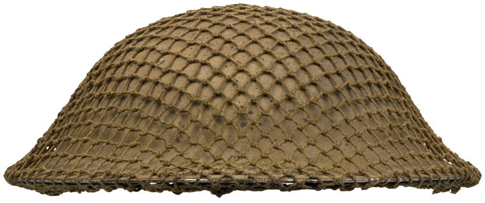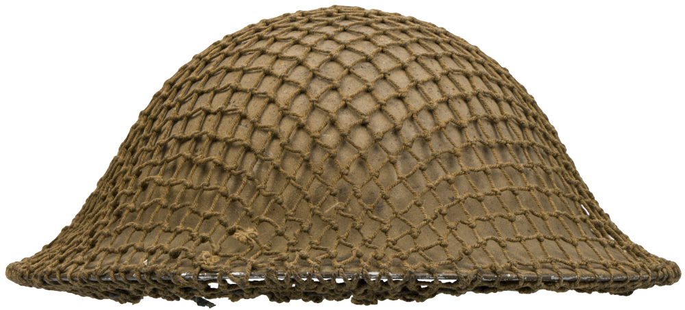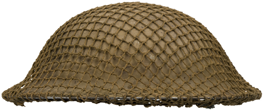 BACKGROUND: The standard British Infantry helmet, as used throughout World War II, being a modification of the Mk. I helmet introduced in April of 1916 and used during the First World War. Production of the MK II helmet began in 1938 and the first units were delivered to the armed forces in 1939. The helmet retained its predecessor’s shape but improved the steel, liner and chin strap.