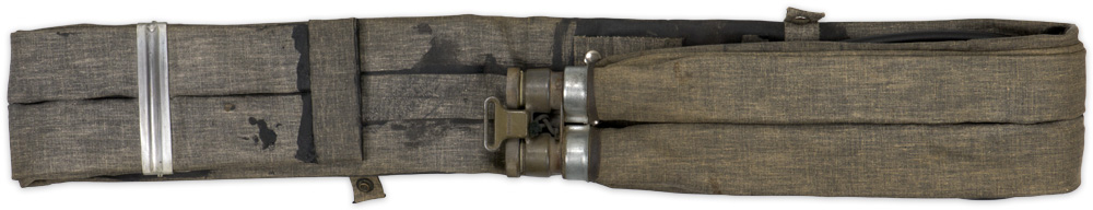 An un-issued, not worn original belt manufactured by “The General Tire & Rubber Co., Akron, Ohio”. The cardboard carton is torn with only a portion of the original carton in tact. The flap is torn off, but included. All hoses, fittings and snaps are complete. Remains supple
