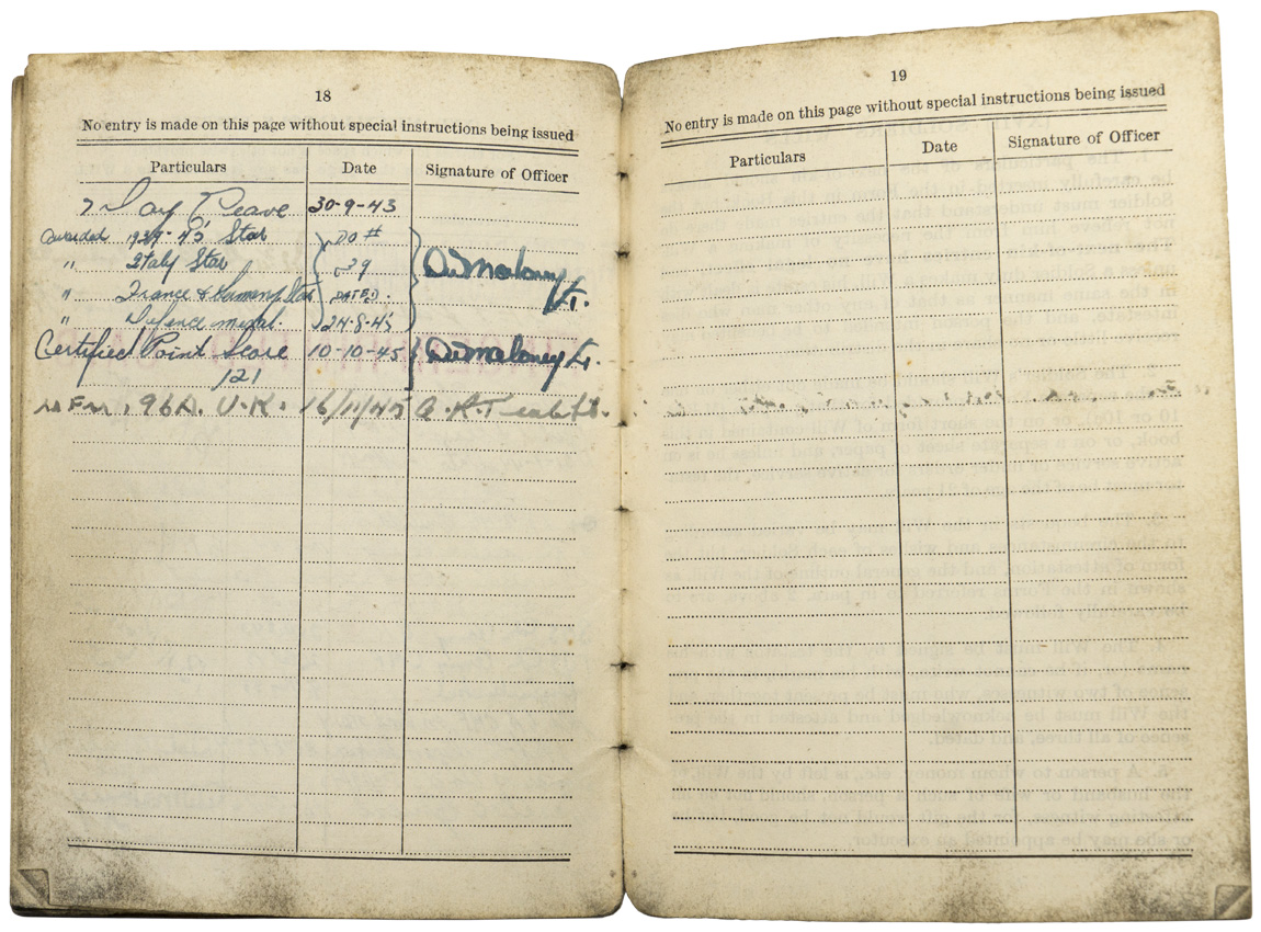 C032194 SOLDIERS SERVICE BOOK AND MEDAL GROUPING.