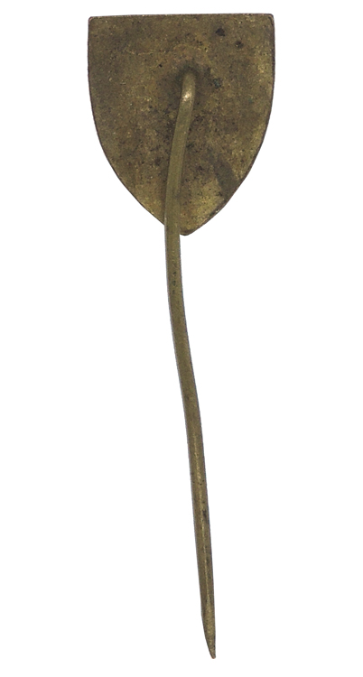 A small 1.5cm x 1.5cm brass and enamel lapel badge that is sits on a 4cm long bent pin.