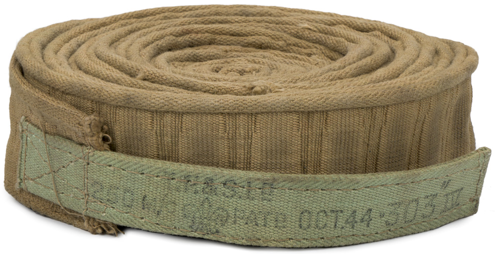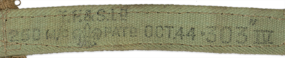 A cloth belt that is marked and dated for "OCT. 44" and ".303 IV".