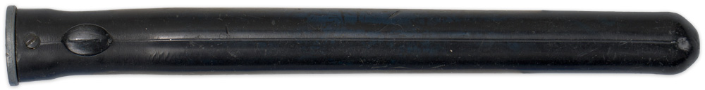PHYSICAL DESCRIPTION: The bayonet is in the form of an 20.5cm long plain straight tube with capped off end. There is a small drain hole to the capped off end with metal alloy mouthpiece and oval shaped frog lug.