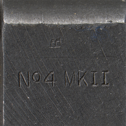 BACKGROUND: There were four different bayonets made during the war, each one a simpler design of the same No 4 pattern, these were the Mk I, Mk II, Mk II* and the Mk III. The British No. 4 Mark II was a simplified version of the British No. 4 Mark I that eliminated the milled cruciform blade for a smooth steel spike that lowered the cost and sped up production. It started production in December 1941 and is the most common of the four patterns of bayonets.