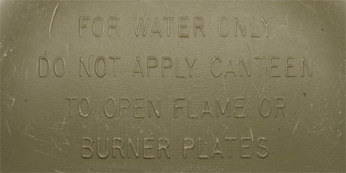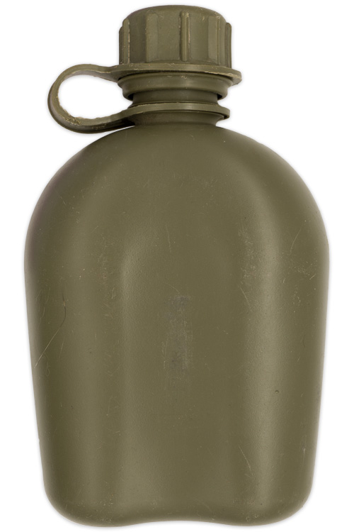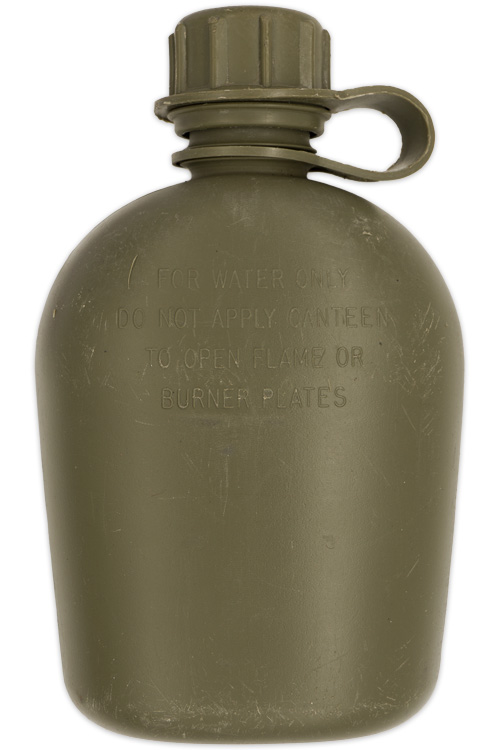 A plastic canteen that is marked to the bottom "U.S. 1966" Some scratches and light surface wear evident.