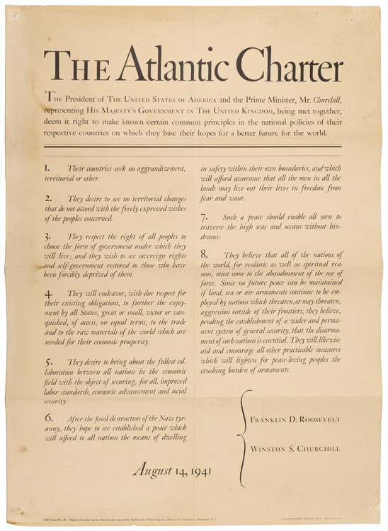 C040985 U.S. "THE ATLANTIC CHARTER; AUGUST 14, 1941" POSTER.