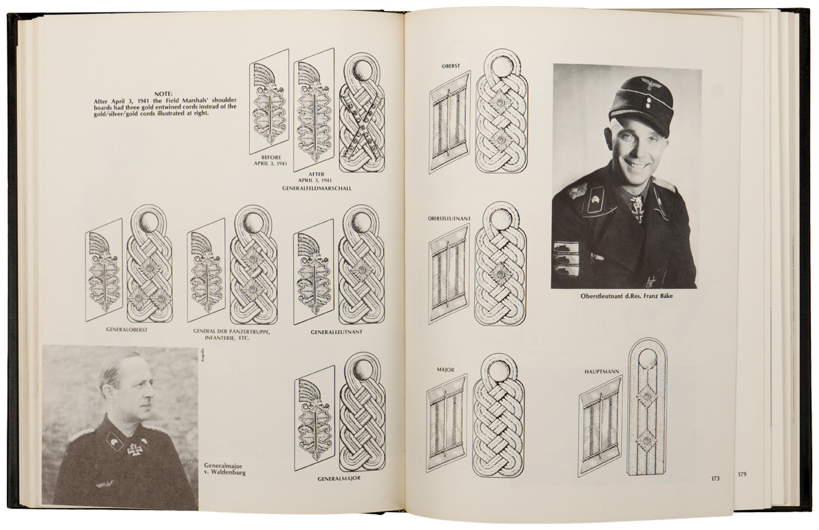 Written by Roger James Bender and Warren W. Odegard and published by R. James Bender Publishing (First Edition 1980). This hardcover reference book measures approximately 23cm x 29xm consisting of 336 pages with illustrated with black-and-white photographs, line drawings, and colour plates. This book covers all aspects of the Panzertruppe from its formation to its downfall. A triangular section has been cut away from the interior front page.