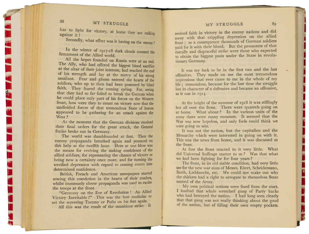 An English version, 14cm x 22cm hardcover book with colour book cover. The book was published by the Paternoster Library (Hurst & Blackett Ltd) as a "Cheap Edition" in March 1938 and consists of 285 pages. The cover shows moderate/heavy usage and wear with evident tearing. Rare to see in this pre-war English edition.