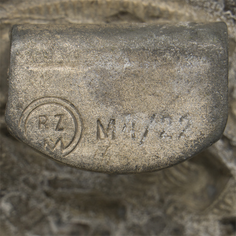 PHYSICAL DESCRIPTION: 1936 pattern, die stamped, three piece, zinc construction buckle. The circular belt buckle features a highly embossed HJ style national eagle clutching the HJ diamond to the center on a slightly pebbled background field. The eagle is encompassed by a circular, ribbed background border with simulated twisted rope trim to both the inner and outer edges. The ribbed border has a highly embossed, Gothic script, HJ motto to the top, "Blut und Ehre", (Blood and Honor). Prong bar has broken off, but all the parts are there. The reverse of the buckle is also well marked with an impressed RZM logo with single circular border and manufacturers code, "M4/22" indicating manufacture by Christian Theodor Dicke Lüdenscheid.