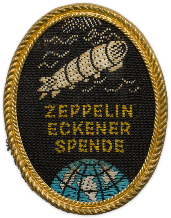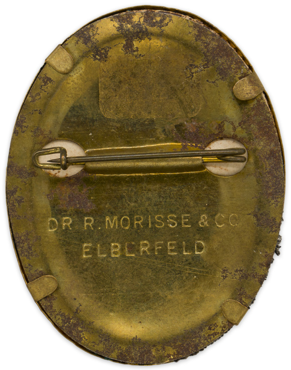A fabric donation pin with machine embroidered design in a two piece, gilt, magnetic alloy frame that measures approximately 3.5cm x 4.5cm. The badge is complete with a spring hinge pin to the reverse, as well as being marked.