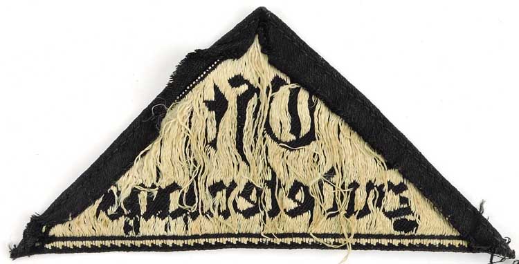 The BDM, Bund Deutscher Mädel, (League of German Girls), was the female counterpart of the male Hitler Jugend, (Hitler Youth), for girls aged 15-17, and was originally established in December 1928 as the Schwesternschaft der HJ, (Sisterhood of the HJ). In July 1930 the organization was re-designated Bund Deutscher Mädel and in April 1931 the JM, Jungmädelgruppe, (Young Girls Group), for girls aged 10-14, was established as the counterpart of the male Deutsche Jugend, (German Youth), On June 1ST 1932 the BDM/JM gained official status as an independent organization of the NSDAP. On January 1ST 1933 the HJ introduced a district sleeve triangle which identified the wearers unit location in the organizational control of the HJ, with the Obergebiet, (Higher Organizational Control), followed by the Gebiet, (Lower Organizational Control), until a restructuring in November 1936 replaced the Obergebiet level with the Obergau level. In April 1934 wear of the district sleeve triangles was extended to include BDM/JM personnel. The HJ district sleeve triangles featured golden yellow script while the BDM/JM district sleeve triangles utilized silver script.PHYSICAL DESCRIPTION: Black rayon construction isosceles triangle with a machine woven Gothic script in two lines, "Ost Sudetenland" in grey to its interior.