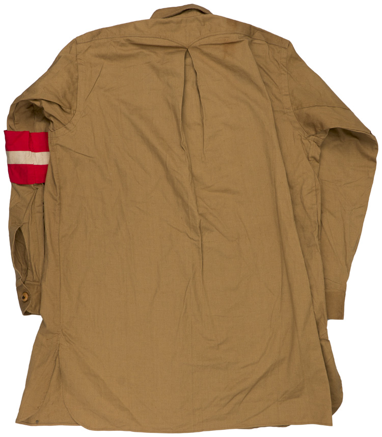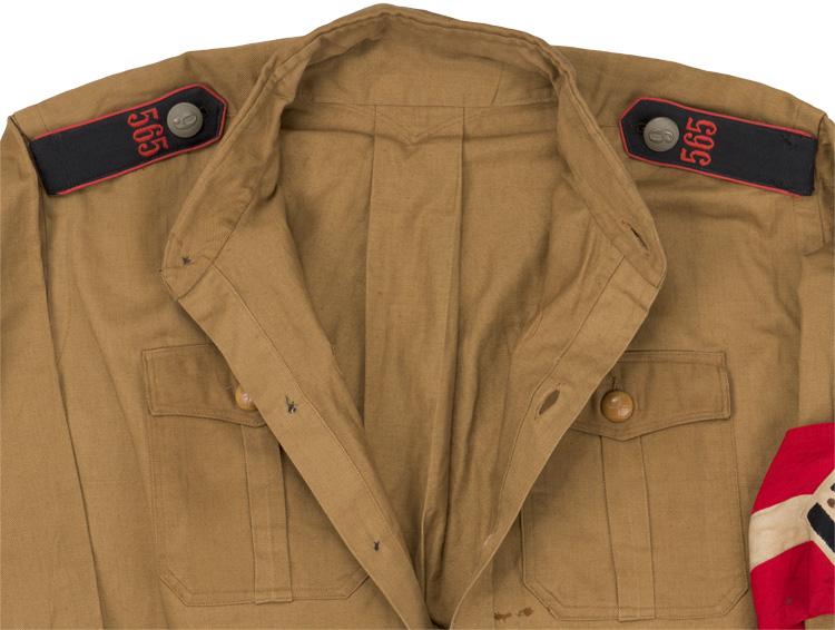 BACKGROUND: The Hitler Youth may be traced back to March of 1922, with the formation of the "Jugendbund der NSDAP" (Youth league of the NSDAP), under control of the SA. In April of 1924 the "Jugendbund der NSDAP" was renamed "Grossdeutsche Jugendbewegung" (Greater german Youth movement), and in July of 1926 the "Grossdeutsche Jugendbewegung" was officially renamed "Hitlerjugend Bund der deutschen Arbeiterjugend" (Hitler youth League of the german Worker youth). Prior to 1925, an assortment of uniform items were worn by "Hitler Jugend" members, mainly consisting of a white shirt and HJ armband. In an attempt to associate themselves more closely with the Nazi Party, the HJ adopted the NSDAP brown shirt in 1925. In August of 1935 the 1933 pattern HJ/DJ service shirt was replaced with a waist length blouse, constructed of a heavier cotton twill, being more of a tunic than a shirt.