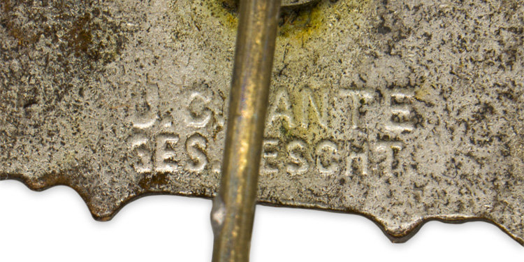 PHYSICAL DESCRIPTION: A 18mm x 18mm solid struck alloy badge in the form of an Iron Cross with black and red enamel work with a silver wash. Mobile swastika to its center with the words "REICHSTRUEBUND all sitting in top of crossed swords. "25" for number of years service is to the bottom of the badge. Reverse is maker marked "Gante" and "Ges. Gesch.," for "Gesetzlich Geschützt" (By-law Protected). Complete with its original 50mm rifled pin.