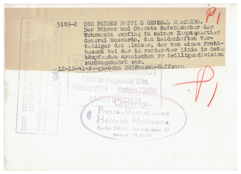 N030076 HOFFMAN PRESS PHOTOGRAPH ‘Der Führer Empfing General Moscardo’.