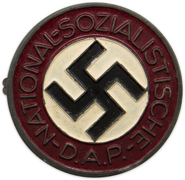 PHYSICAL DESCRIPTION: A 23mm diameter, die struck zinc and painted NSDAP member’s badge. The badge features a red outer border, edged in silver, with the silver script, "National-Sozialistische-D.A.P.," encompassing a white field with a black mobile swastika, also edged in silver. Complete with original pinback device. The reverse has the embossed RZM logo and "M1/25" for Rudolf Reiling.