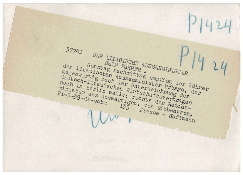 N033976 HOFFMAN PRESS PHOTOGRAPH ‘Der Litauische Aussenminister Beim Führer’.