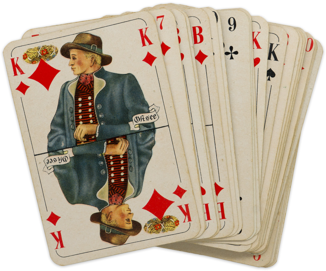 BACKGROUND: The NSDStB, National Socialist Deutscher Studentenbund, (National Socialist German Students League), was established in February 1926 at the University of Munich to supply the appropriate political leadership to the student bodies of the Germany Universities. In July 1928 leadership of the Studentenbund was taken over by Reichsjugendführer Baldur von Schirach who organized the membership along military lines. Originally personnel had to be an NSDAP member to enroll in the Studentenbund but this requirement was withdrawn in 1929. Skat, the most popular German card game, evolved from the earlier, Schafskopf, (Sheep's head), card game which is at least two hundred and fifty years old. The game of Skat requires a deck of thirty-two cards as opposed to the standard fifty-two card deck. Of Note: Although referred to as a "Skat" deck of cards other card games also utilize only thirty-two cards including, Piquet, Escarte and Euchre.