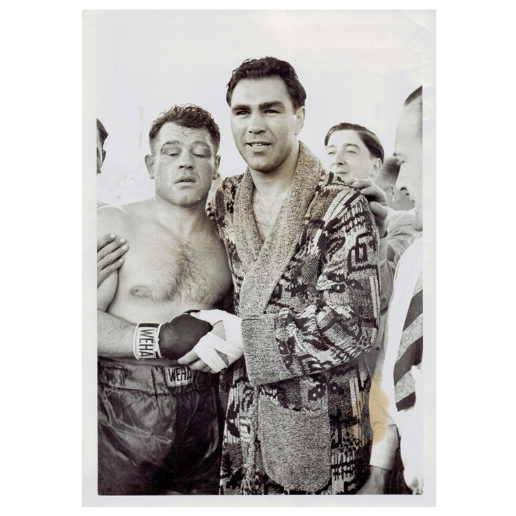 (Pressefoto).BACKGROUND: This photo along with many others came back with a Canadian vet at the end of WW2. We just received the grouping from the family. Most are unpublished Hoffman's, never before seen. Heinrich Hoffman was the official photographer for Adolf Hitler. Note: Max Scmelling was a German boxer who was heavyweight champion of the world between from 1930 to 1932. His two fights with Joe Louis in 1936 and 1938 were worldwide cultural events because of their national associations. During World War II, Schmeling served with the German Air Force (Luftwaffe) as an elite paratrooper (Fallschirmjäger).
