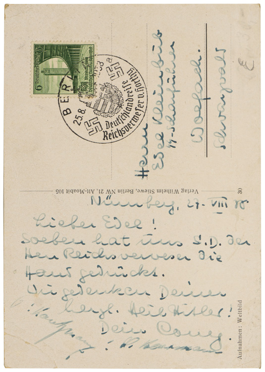 A black and white portrait, photograph postcard of Nikolaus Horthy von Nagybanya with his wife, that was mailed to an SS Scharführer who mentions that he had shaken Horthy’s hand in person. Posted and dated for 1938.