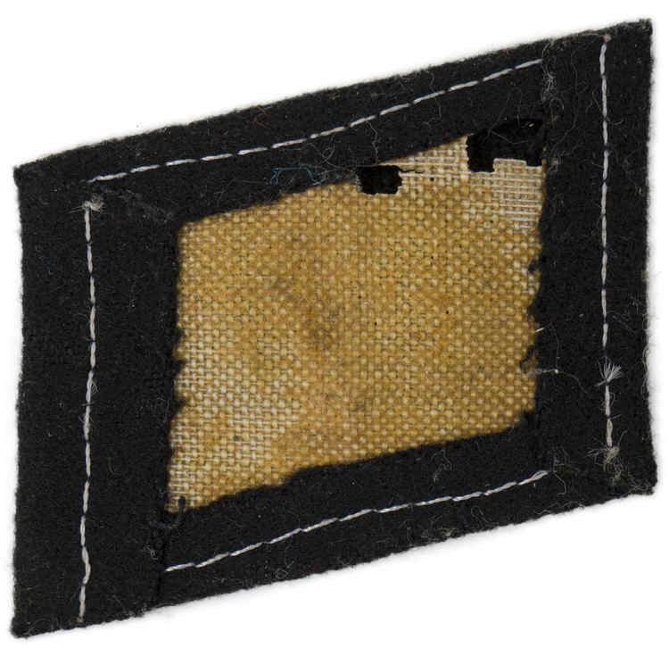 BACKGROUND: In August 1929 the SS, Schutz Staffel, (Protection Squad), incorporated the wear of rank collar tabs on the left side of the collar of the service tunic. The SS collar tabs were originally adopted from the earlier rank collar tabs as utilized by the SA, Sturm Abteilung, (Storm/Assault Detachment). The SS collar tabs remained in usage through out the war with a couple of minor alterations. Originally EM/NCO’s collar tabs for the ranks of SS Schütze to SS Hauptscharführer inclusively were piped in twisted white cord from their original inception, (Rank tabs, August 1929/Runic tabs, May 1933), until October 24TH 1934 when the piping for EM/NCO’s was modified to alternating twisted black and silver/aluminum cord piping. The final modification, in August 1940, eliminated all piping from EM/NCO’s collar tabs. Officer’s ranks collar tabs from SS Untersturmführer to SS Hauptsturmführer utilized alternating twisted black and silver/aluminum cord piping from their inception until October 24TH 1934 and silver/aluminum cord piping from October 1934 until the end of the war while the ranks of SS Sturmbannführer to SS Reichsführer utilized the silver/aluminum cord piping from August 1929 to May 1945. With the arrest and imprisonment of Italy’s Duce Benito Mussolini on July 25TH 1943, Italy immediately became embroiled in a virtual civil war between the pro and anti fascist elements within the country. On September 8TH 1943 Italy officially ended hostilities with the allies and four days later Mussolini was rescued by the Germans and set up the puppet Republica Sociale Italiana, (Italian Social Republic), government in northern Italy. In October and November of 1943 the Germans began to enlist pro fascist Italians and formed the 1. Italienische Freiwillingen Sturmbrigade Milizia Armata, (1ST Italian Volunteer Assault Brigade of the Armed Militia), in southern Germany. In January 1944 the Brigade returned to Italy and participated in the battle of the Anzio beachhead in the spring of that year. Originally Italian personnel of the brigade wore red collar patches with a silver fasces but in recognition of their service in the Battle of Anzio a black collar tab with a silver fasces was introduced for wear on June 15TH 1944. Of Note: In September 1944 the Brigade was upgraded to divisional status and eventually evolved into the 29. Waffen Grenadier Division der SS (italienische Nr.1). In March 1945 the division was allocated the numerical designation, "29", long after the disbanding of the same numbered Russian division.