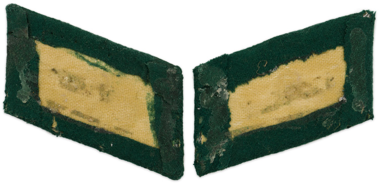 BACKGROUND: The German Customs Service can be traced back to 1834 when a Customs Union was formed to allow the separate German States to trade amongst themselves without trade and tariff taxes, while still imposing import trade taxes on other European nations. With the unification of the German States into a single nation in 1871 the Customs Service became a national paramilitary organization, under control of the Reichsfinanzministerium, (National Finance Ministry), in Berlin. The national Customs Service was still responsible for imposing and collecting import trade taxes but was also tasked with border defence duties. In 1936 the Customs Service was reorganized and given further policing responsibilities including the apprehension of individuals attempting to escape from the NSDAP’s yoke. The German Customs service was divided into two separate branches with one branch consisting of the Landzollbeamte, (Land Customs Officials), which was subdivided into the Zollgrenzschutz, (Land Customs Border Guards), and the Wasserzollbeamte, (Water Customs Officials), and the second branch consisting of the remaining Zollbeamte, (Customs Officials). On June 17TH 1936, Reichsführer-SS Heinrich Himmler was appointed to the newly created position of Chef der Deutschen Polizei im Reichsministerium des Innern, (Chief of the German Police in the National Ministry of the Interior), effectively giving him full control of all police agencies within Germany including the Customs service. In November 1934 the first Third Reich era pattern insignia including collar tabs and shoulder boards were introduced for all Customs Officials in an attempt to bring about uniformity in dress. In August 1937 new pattern insignia was introduced that was utilized for the duration of the war. Of Note: The 1934 pattern collar tabs did not denote rank, which was displayed on the shoulder boards, and were the same for all personnel while the 1937 pattern collar tabs did indicate specific ranks and/or groups of ranks with the shoulder boards also indicating specific ranks and/or groups of ranks. Also Of Note: Both of the branches of service wore almost identical collar insignia with the first branch, (Landzollbeamte), utilizing matte silver/aluminum trim and the second branch, (Zollbeamte), utilizing bright silver/aluminum trim.