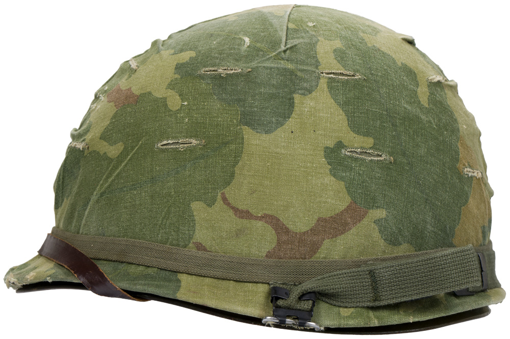 C003991 VIETNAM WAR ERA U.S. M-1 COMBAT HELMET WITH CAMOUFLAGE COVER. |