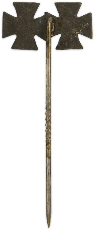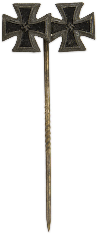 PHYSICAL DESCRIPTION: Nice quality, die struck alloy, combined, exact detailed miniatures of the Iron Cross 1ST and 2ND class. Reverse has its vertical 40mm stickpin intact.