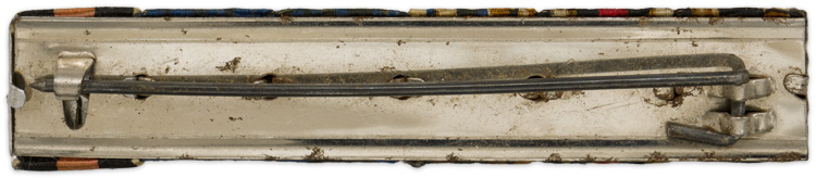 The wear of Awards, Medal Bars and Ribbon Bars were addressed in regulations of April 28TH 1937 and followed established directives that had been previously laid down. When an award was instituted the introductory orders would prescribe the proper form of wear with most of the awards being permitted to be grouped together on a medal or ribbon bar. The medal bars were intended for wear on the walking-out dress and formal uniforms, while the ribbon bars were intended for all other forms of dress. Strict regulations listed the required order in which ribbons awards were authorized to be worn on the ribbon bar.PHYSICAL DESCRIPTION: The six place ribbon bar with a 1914 EK2 (Spange), 1914-18 Cross of Honor, Three Long Service ribbons and a Commemorative Medal of October 1ST 1938 ribbon with Prague Castle bar cypher. (Prague bar is a little loose). Complete with original pinback device.