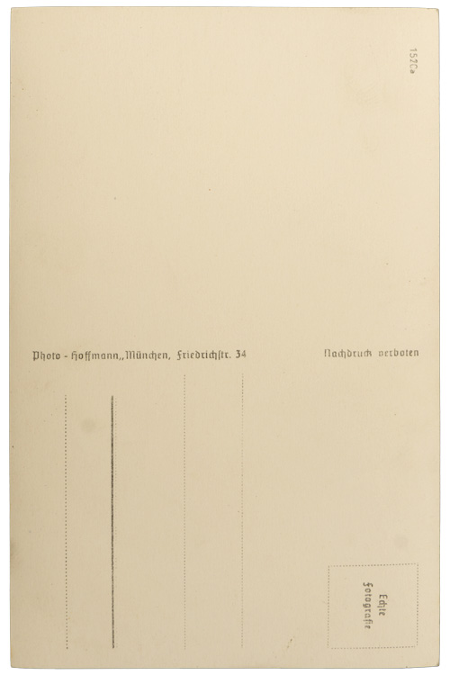 A black and white photograph postcard of standard size, with the caption "Generalfeldmarschall Rommel" to the bottom right corner. The postcard has not been posted or used. Portrait photograph taken by Hoffmann.