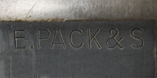 PHYSICAL DESCRIPTION: Roughly 25cm long, drop forged, steel construction blade with wide fullers. Blade retains most of it's original blueing. Maker marked "E PACK & S" and dated for 1940. Bakelite grip. Stud functions well. Matching scabbard. Complete with original frog.