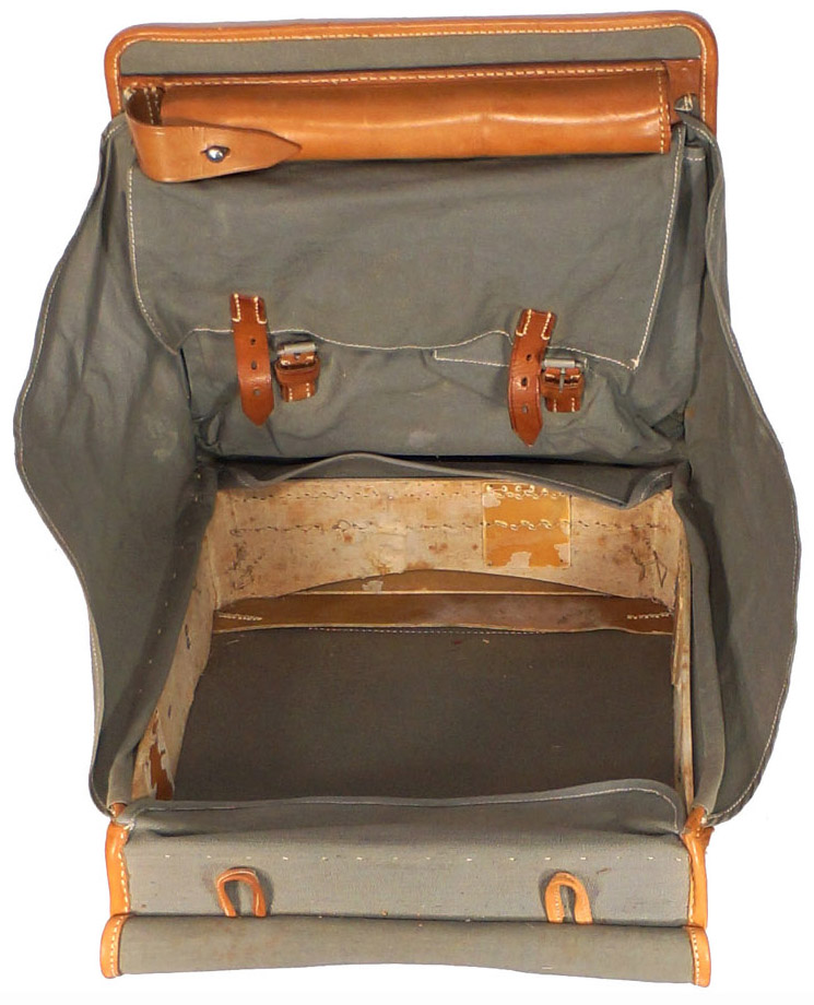(Fernsprechtornister)BACKGROUND: Based on the M39 "Tornister," but larger and with dual closure flaps. The backpack would contain the necessary equipment for the Signalman, such as cable reels and various tools. There were three versions of the backpack, "1,2,3", with each having different interiors.