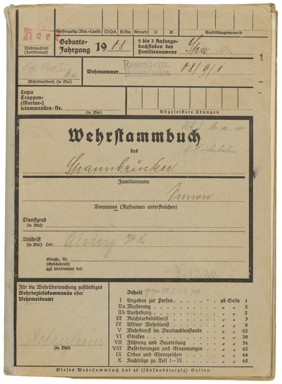 H011394 SOLDIER’S SERVICE RECORDS. (Wehrstammbuch)