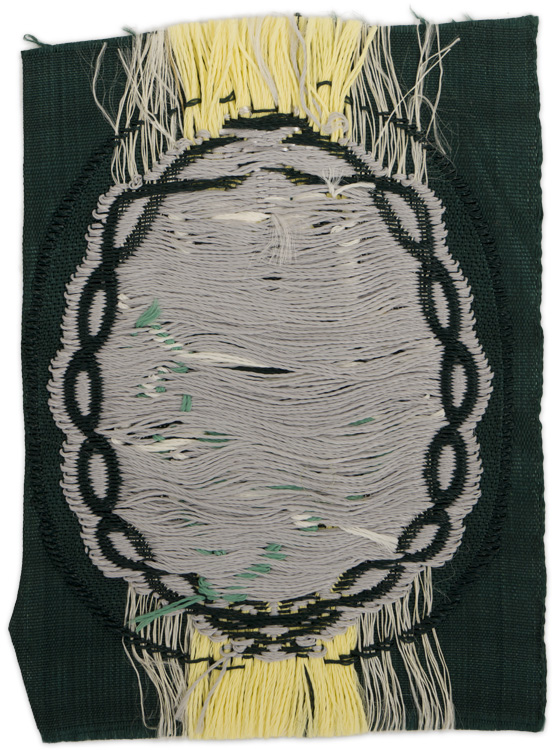 PHYSICAL DESCRIPTION: Pre-1940 pattern insignia with a roughly, 65mm tall, 55mm wide, vertically oval, machine woven, blue/green rayon base with a machine woven edelweiss flower with thirteen irregular white petals, an eight bulb, yellow stamen and dual green leaves and stem all in rayon threads. The edelweiss is encompassed with a simulated, pale grey rayon mountaineer rope border, with a silvery/grey piton to the top center. Still on original factory roll.