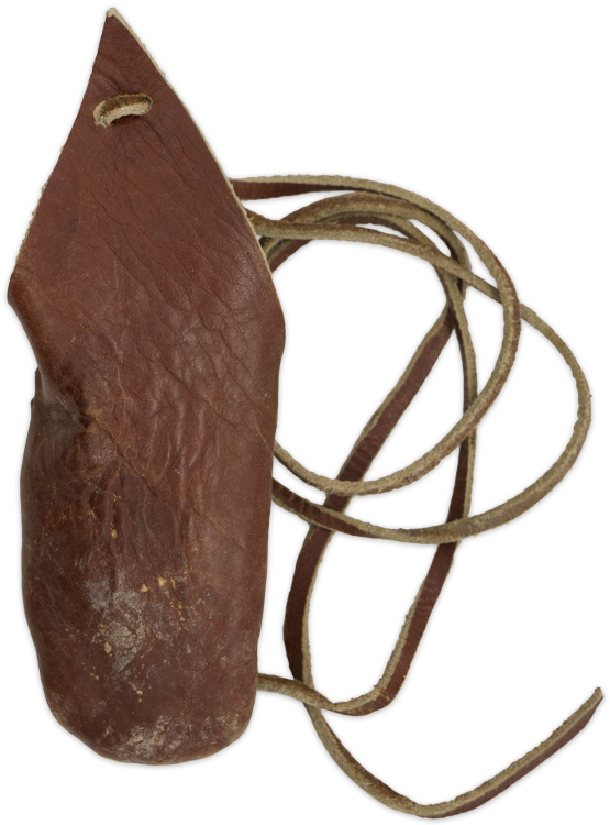 (Schiene)All leather construction two piece construction with sewn seam. Original attachment strings still present.