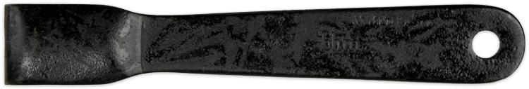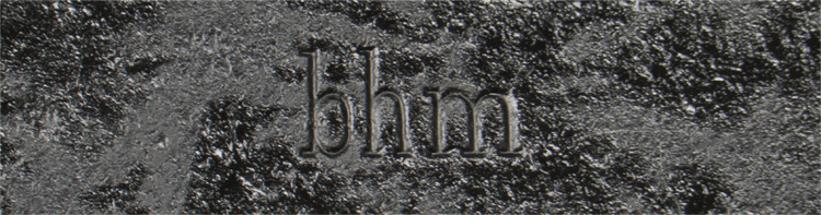 PHYSICAL DESCRIPTION: Blued, tooled steel construction spanner style wrench is roughly, 13cm long, with a 20mm wide, central handle. The wrench has a roughly, 20mm wide rectangular head to one end with a raised lip with a semi-circular cut-out. The wrench is well marked with deeply stamped manufacturers code, "bhm", indicating manufacture by Gustav Auerswald Besteckfabrik Grünhain. Currently covered in a protective oil.