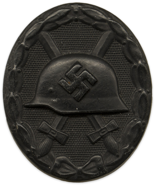 BACKGROUND: The wound badge was originally established on March 3RD 1918 by King Wilhelm II to recognise the sacrifice of those wounded during WWI. The badge was instituted in three classes, of black, silver and gold with the class bestowed reflecting the number or severity of the wounds received. On May 22ND 1939 Adolf Hitler re instituted a slightly modified version of the wound badge with the addition of a swastika to the WWI pattern badge for award to German volunteers who had been wounded supporting the Spanish Nationalist Falangist Generalissimo Francisco Franco against the communist allied Republican Loyalist party in the Spanish Civil War. (July 1936 March 1939). With the outbreak of WWII, on September 1ST 1939, Hitler once again re instituted another slightly modified version of the wound badge by altering the WWI pattern helmet on the badge to the newly designed M35 style helmet. The badge was awarded to both military and uniformed non military personnel and later, (March 1943), to civilian personnel who received wounds as a result of enemy actions. The black wound badge was the lowest of the three classes and was awarded for one or two wounds.