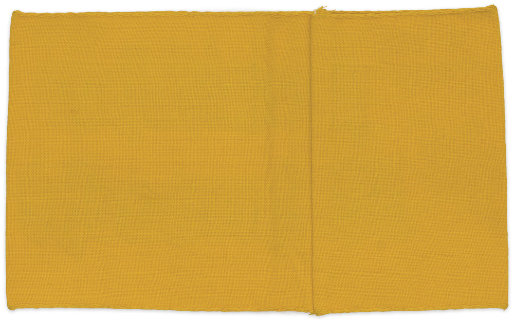 PHYSICAL DESCRIPTION: Roughly, 10.5cm tall, 36cm long, woven, yellow cotton construction armband with machine woven, black, Gothic script in two lines to the obverse, "Deutsche Wehrmacht", (German Armed Forces). The top and bottom edges of the armband have interwoven rows of reinforcement stitching and the reverse of the armband has a machine stitched, vertical seam.
