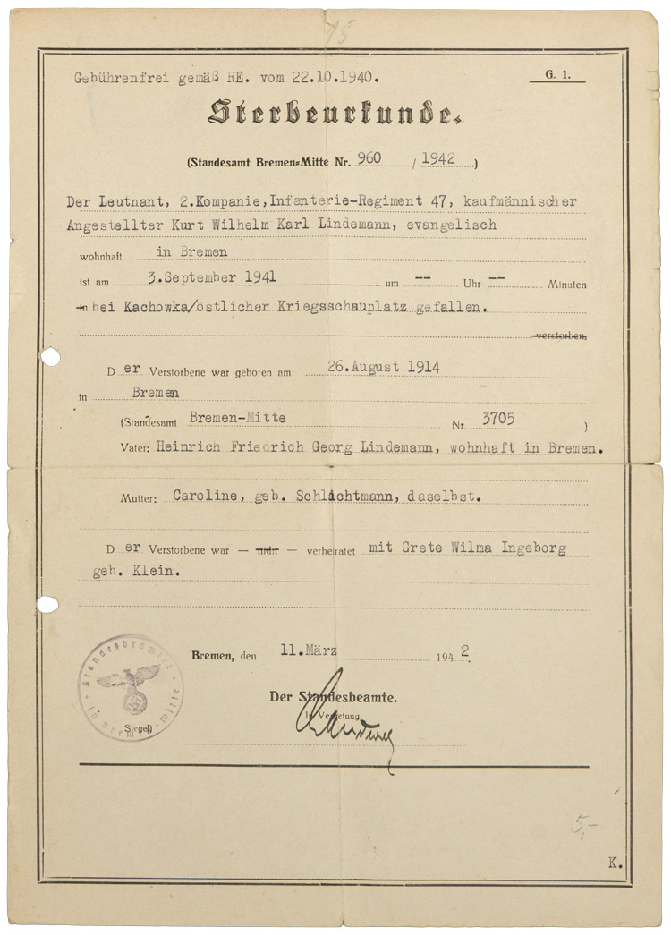 A single sided, typed document dated for 1942. The document has been stored folded.