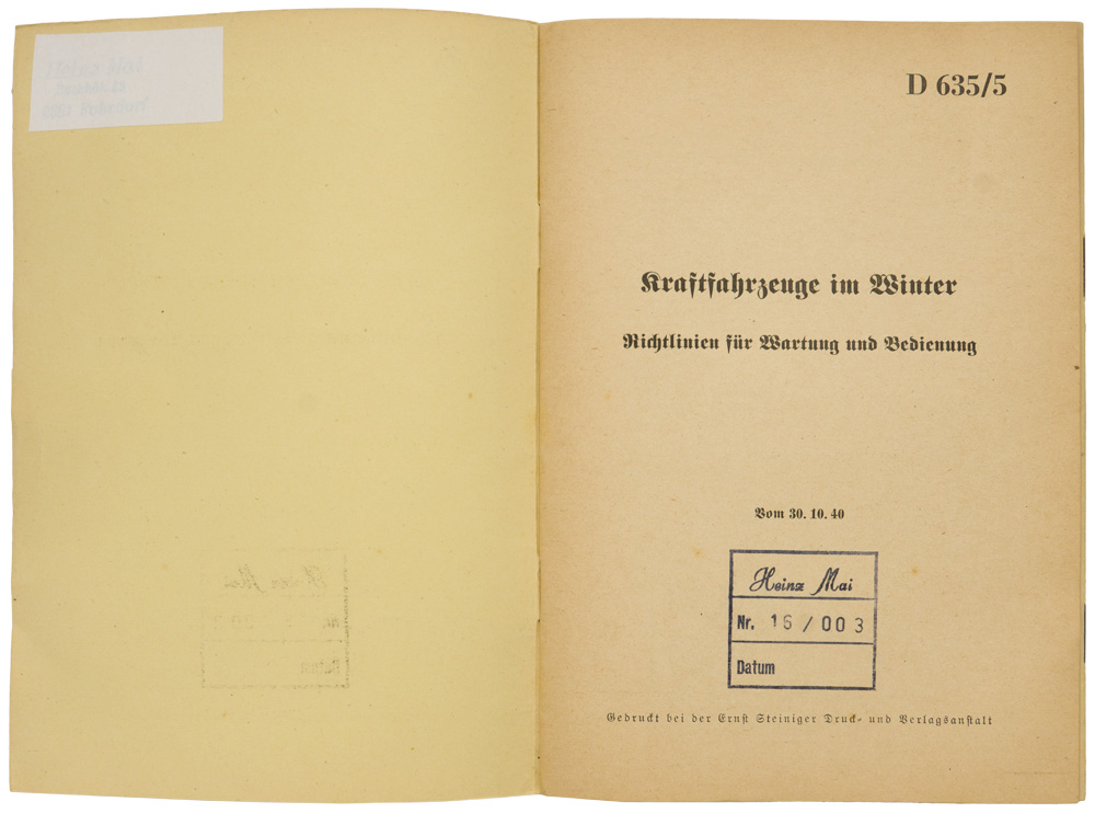 H018893 "MOTOR VEHICLES IN WINTER; GUIDELINES FOR MAINTENANCE AND OPERATION’ BOOKLET.