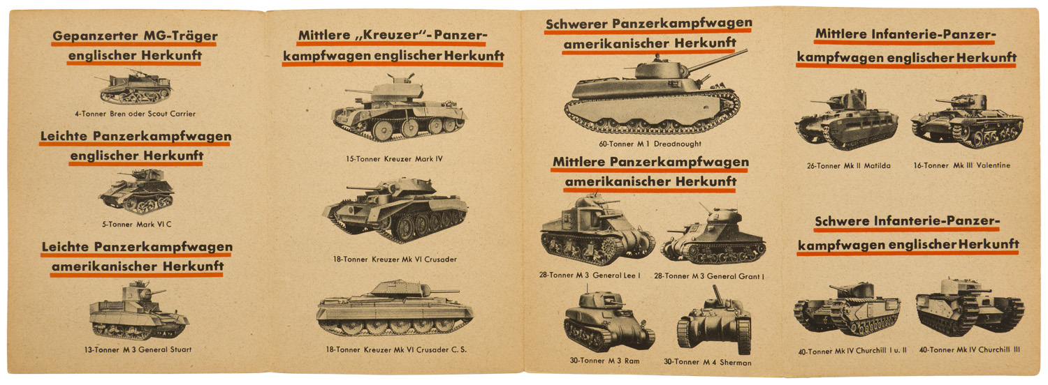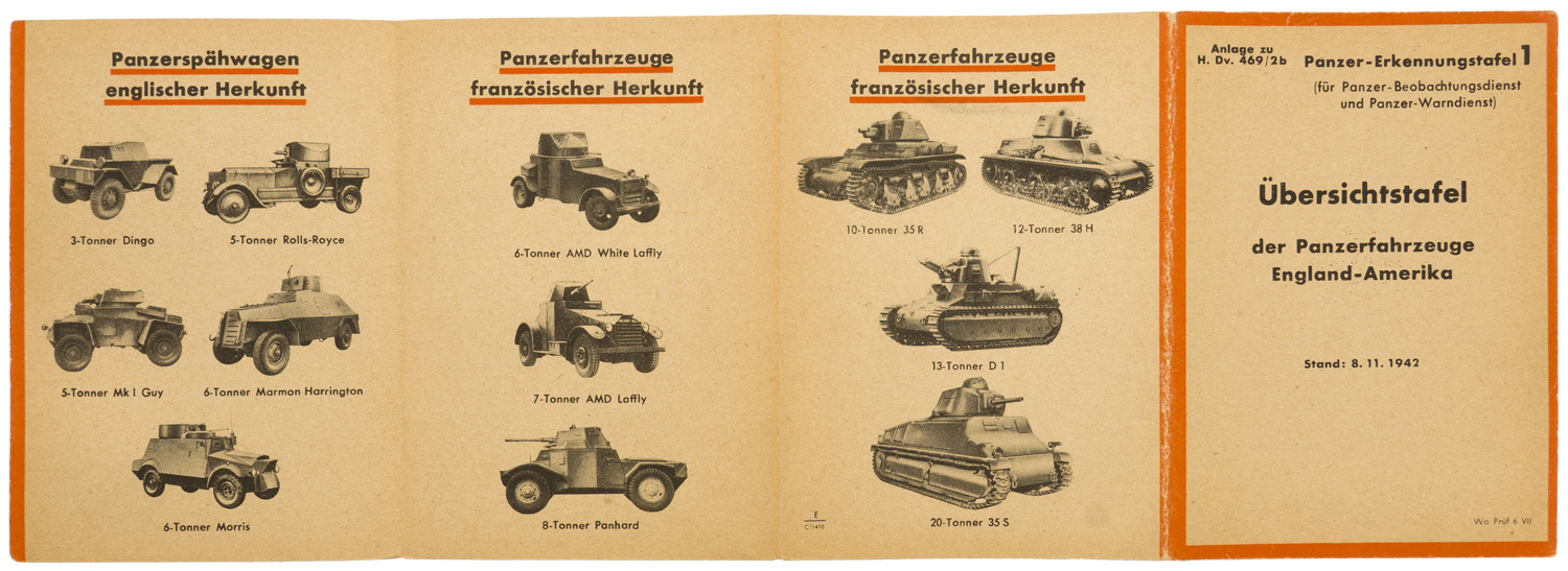 Entitled "Übersichtstafel de deutschen Panzerfahrzeuge". Roughly 15cm x 42cm when unfolded. Two sided. Dated for 1942. Nice!