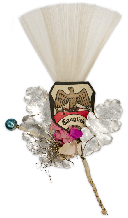 An oak leaf and flower award decoration with original tag. For celebrating returning soldiers from the front when they arrived at the S-train station. Unbelievably rare to have survived.